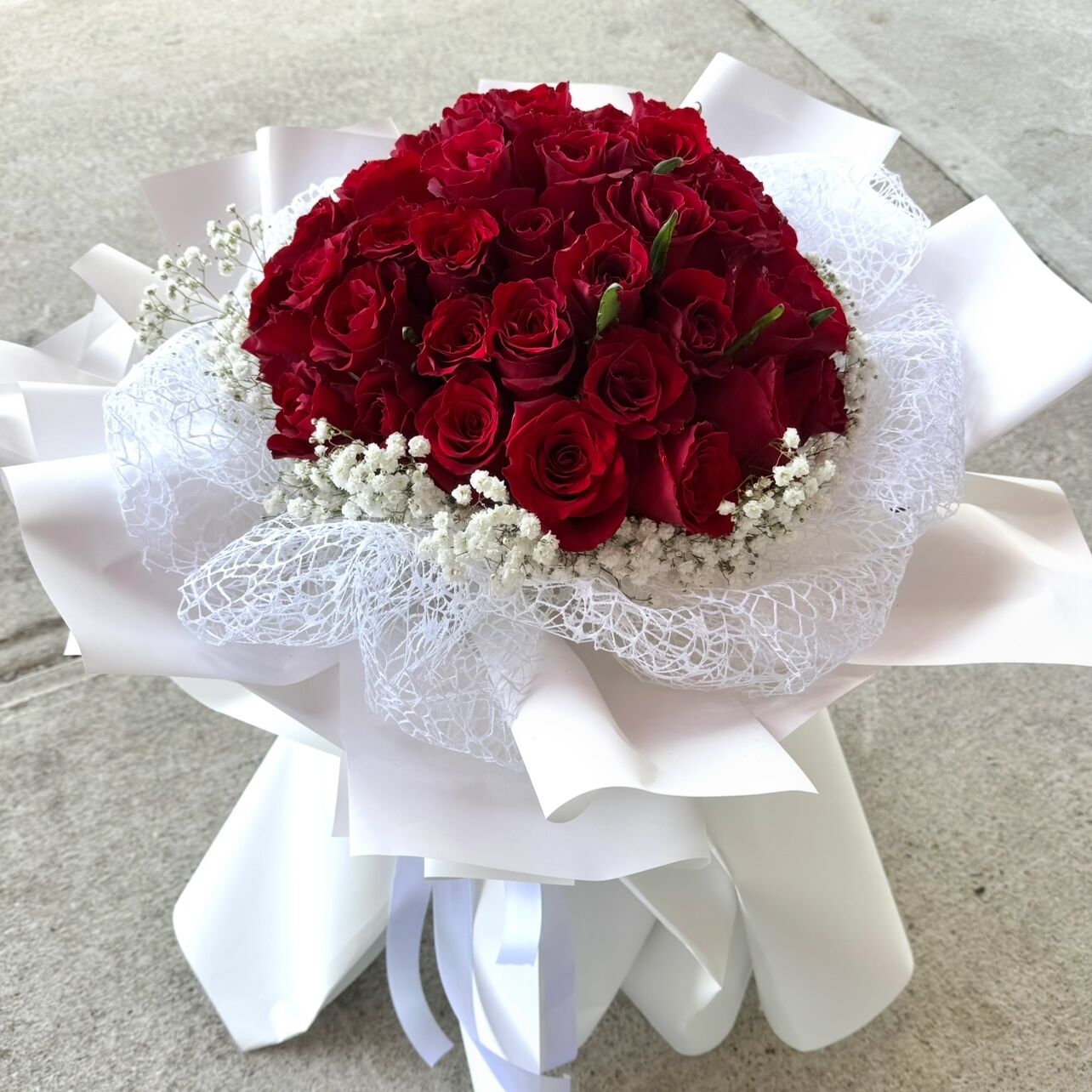 Choose from 30, 50 or 100 gorgeous fresh red roses bouquet. Leave order notes or contact us for custom colours 🙂