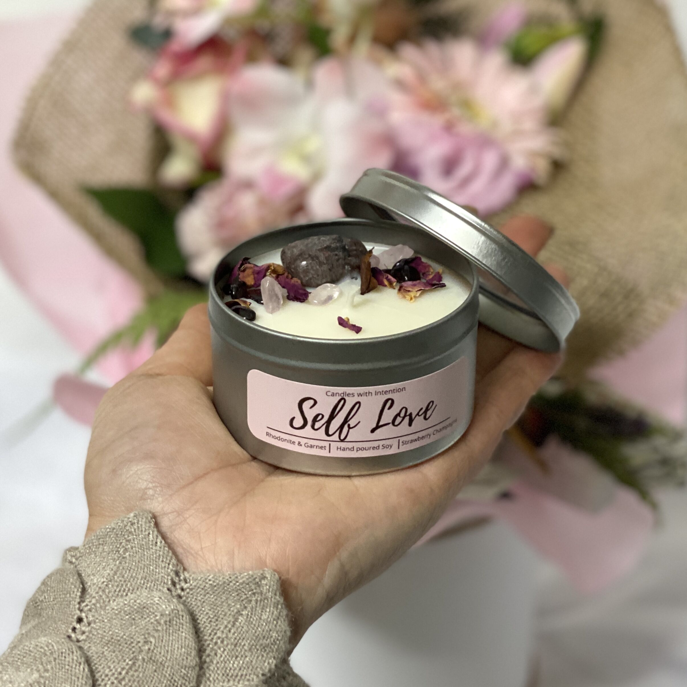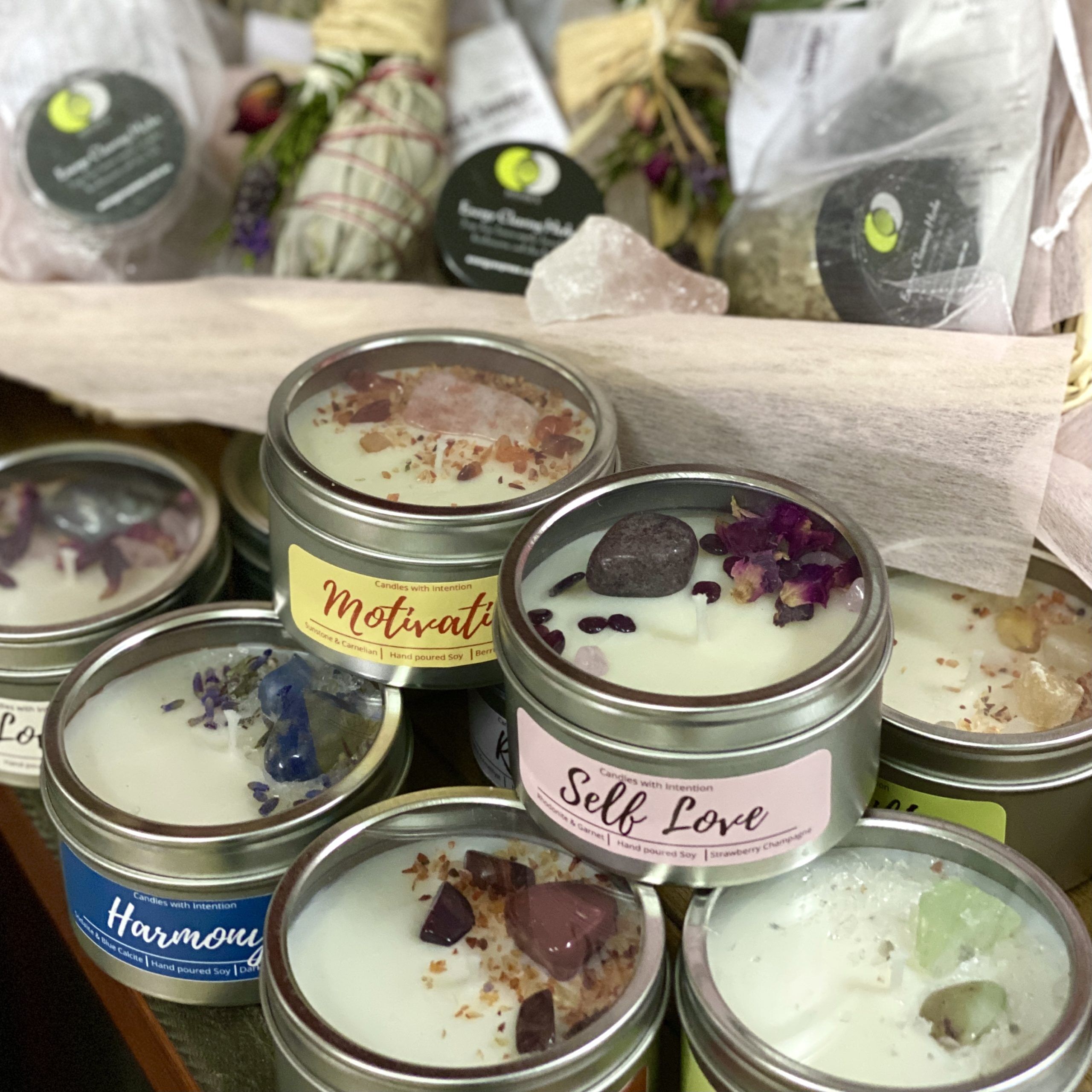 Hand poured so candles made in Melbourne with love! A perfect addition to your floral gift. Each candle is divinely fragranced to match the intent and adorned with symbolic crystals, dried flowers and herbs.