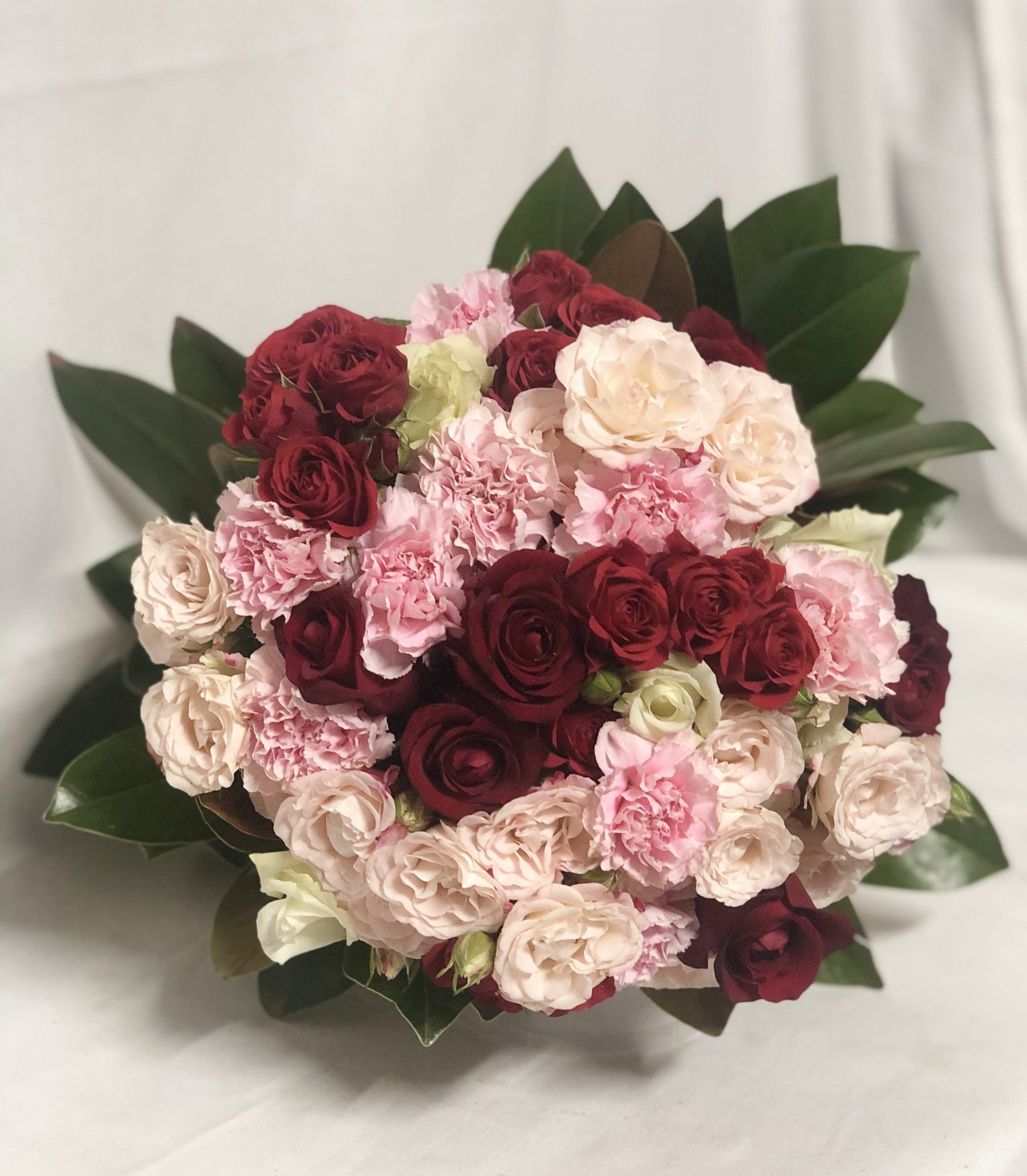 Sweet red and pinks roses, carnations and seasonal blooms
